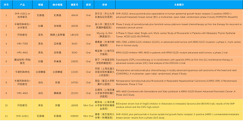 15款创新药包括10款已上市产品:注射用瑞康曲妥珠单抗(艾维达®,研发代号:SHR-A1811)、注射用卡瑞利珠单抗(艾瑞卡®)、苹果酸法米替尼胶囊(艾比特®)、甲磺酸阿帕替尼片(艾坦®)、马来酸吡咯替尼片(艾瑞妮®)、阿得贝利单抗注射液(艾瑞利®)、羟乙磺酸达尔西利片(艾瑞康®)、氟唑帕利胶囊(艾瑞颐®)、瑞维鲁胺片(艾瑞恩®)、海曲泊帕乙醇胺片(恒曲®),以及5款未上市产品,包括KRASG12C抑制剂HRS-7058、KRASG12D抑制剂HRS-4642、选择性的AR-PROTAC(雄激素受体-蛋白降解靶向嵌合体)小分子HRS-5041、抗PD-L1/TGF-βRII双抗瑞拉芙普-α注射液(SHR-1701)、Trop-2 ADC SHR-A1921。2类新药盐酸伊立替康脂质体注射液(II)(越优力®)及国内首仿药昂丹司琼口溶膜(艾其速®)各有1项研究入选。本文特对研究成果做了梳理,带领各位读者领略DB真人医药创新之光。